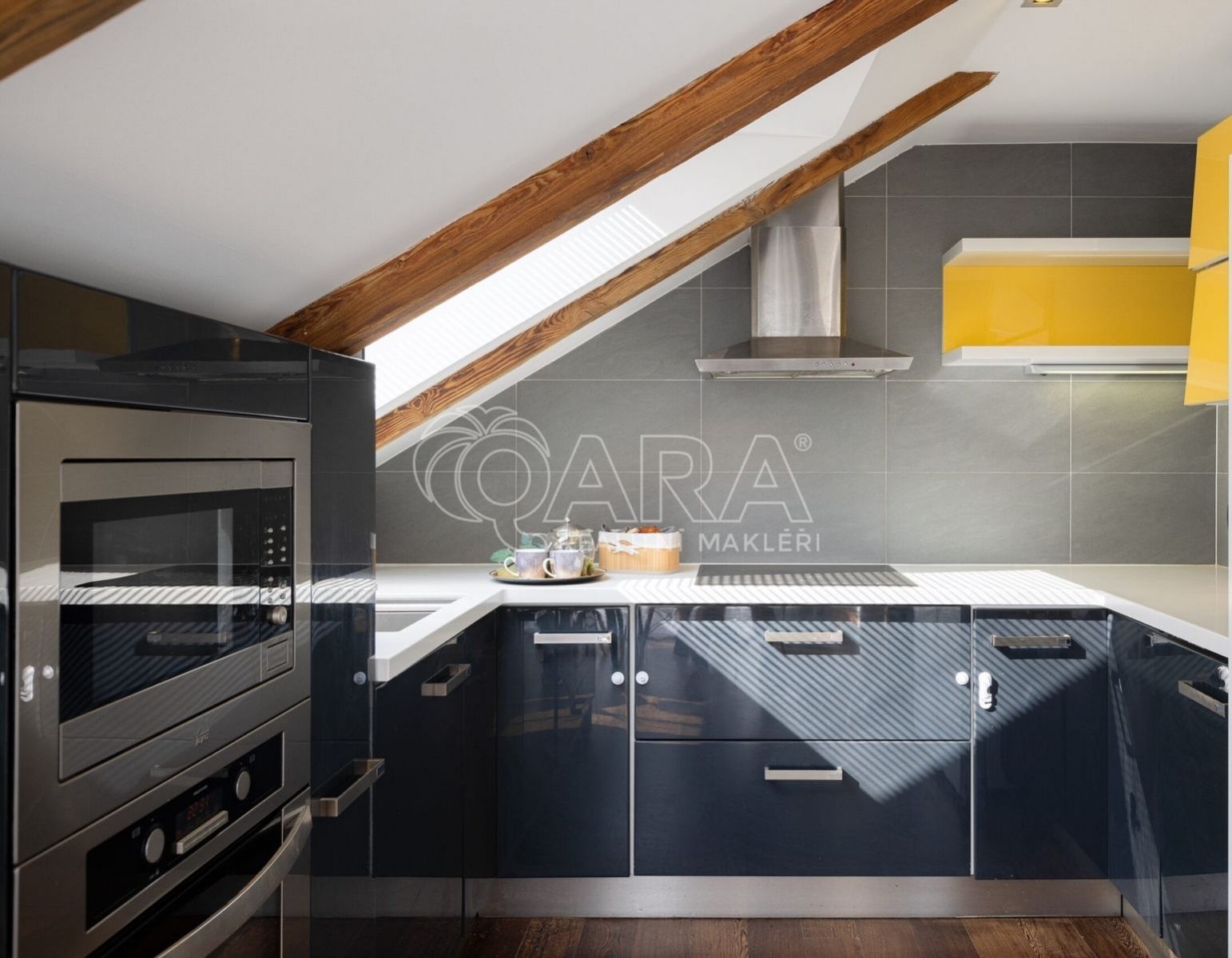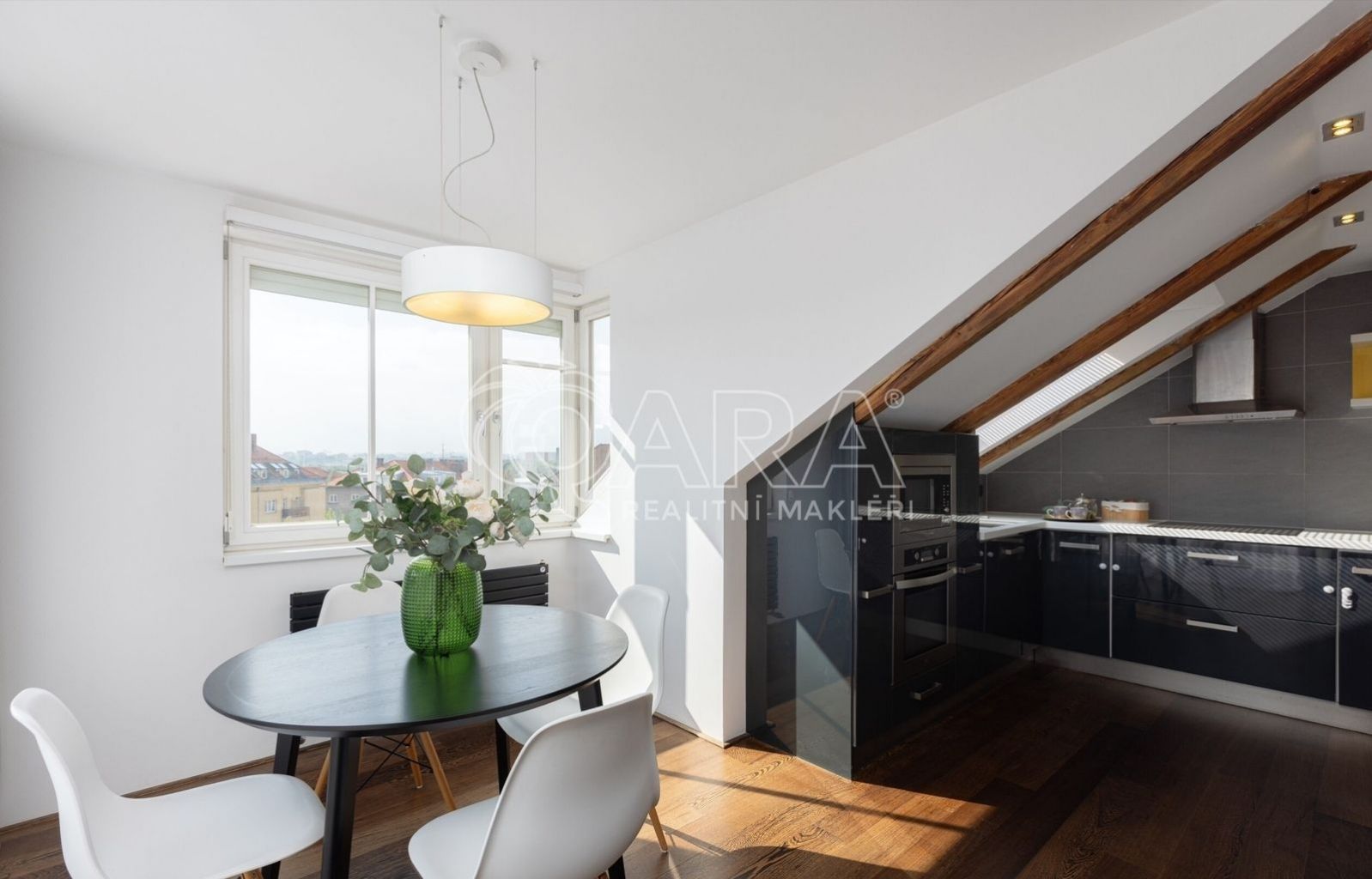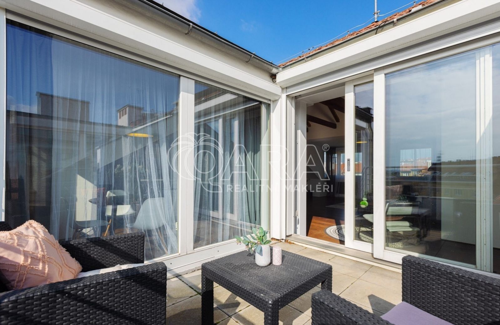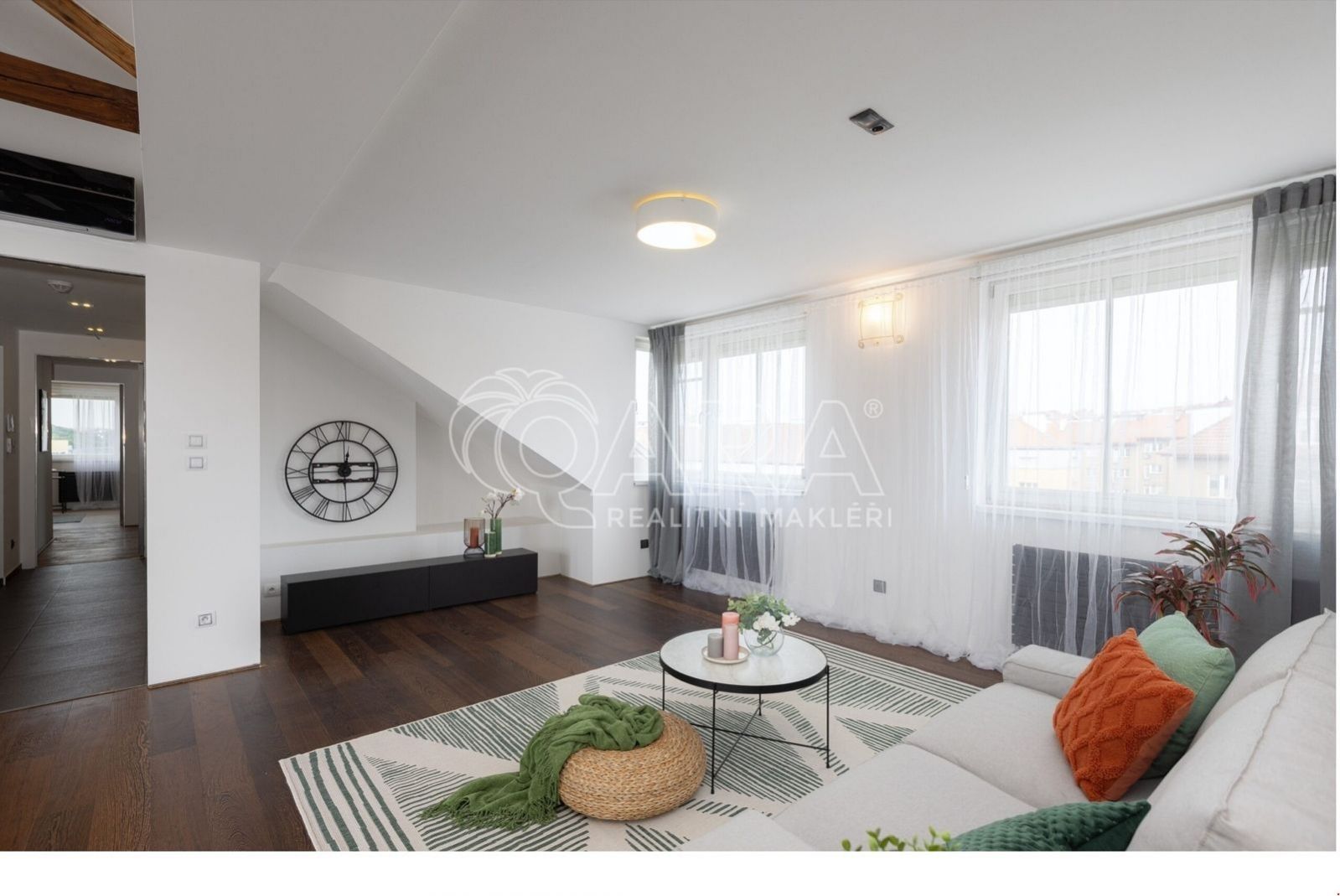 Zapomeňte na stereotypní podkrovní byty s nízkými stropy. Tohle je prostor, kde se můžete nadechnout. Na ploše 146 m se rozkládá byt, který v sobě snoubí moderní design a praktičnost. Díky výtahu, který vás doveze až do vaší předsíně pomocí čipu, si užijete maximální komfort a soukromí. Pro hosty je k dispozici video telefon a schodiště, které můžete využít pro dodatečný úložný prostor.