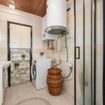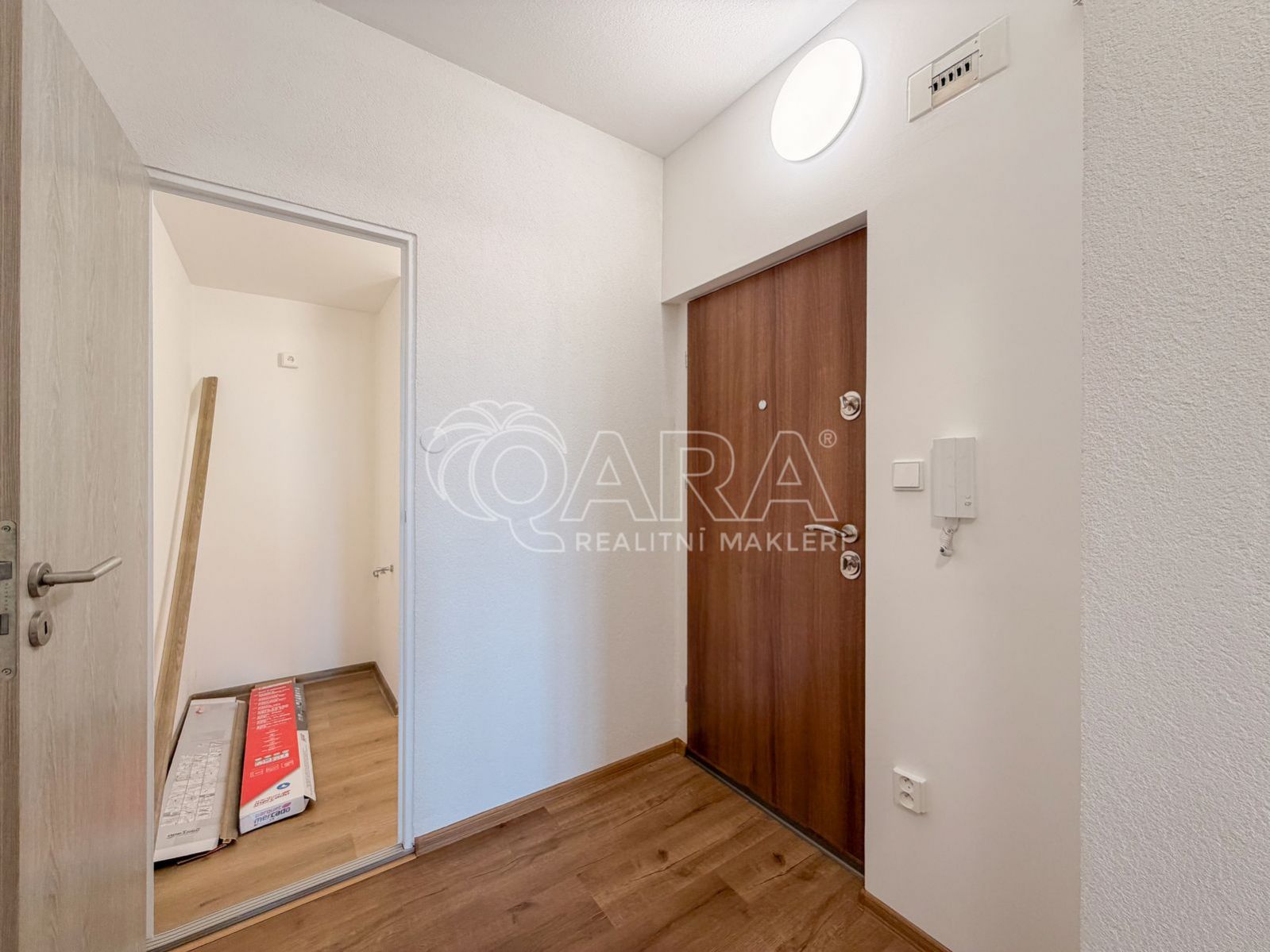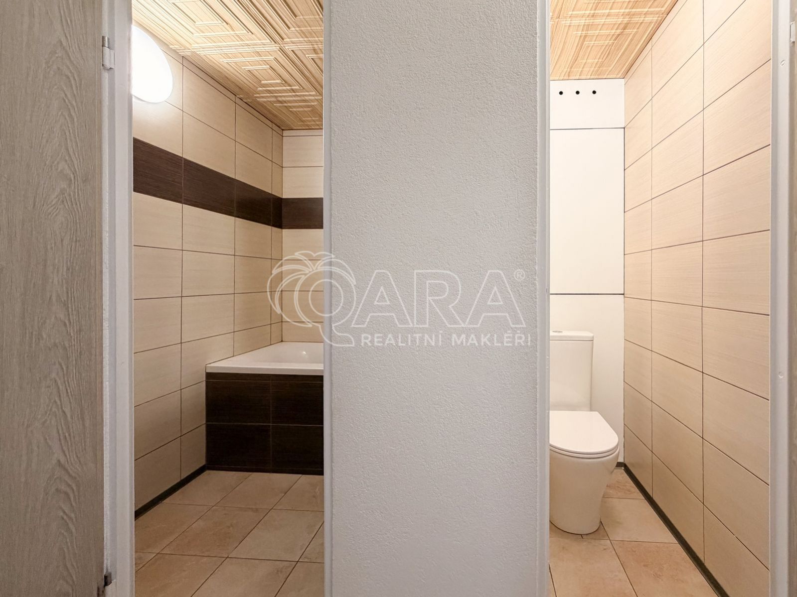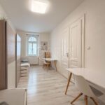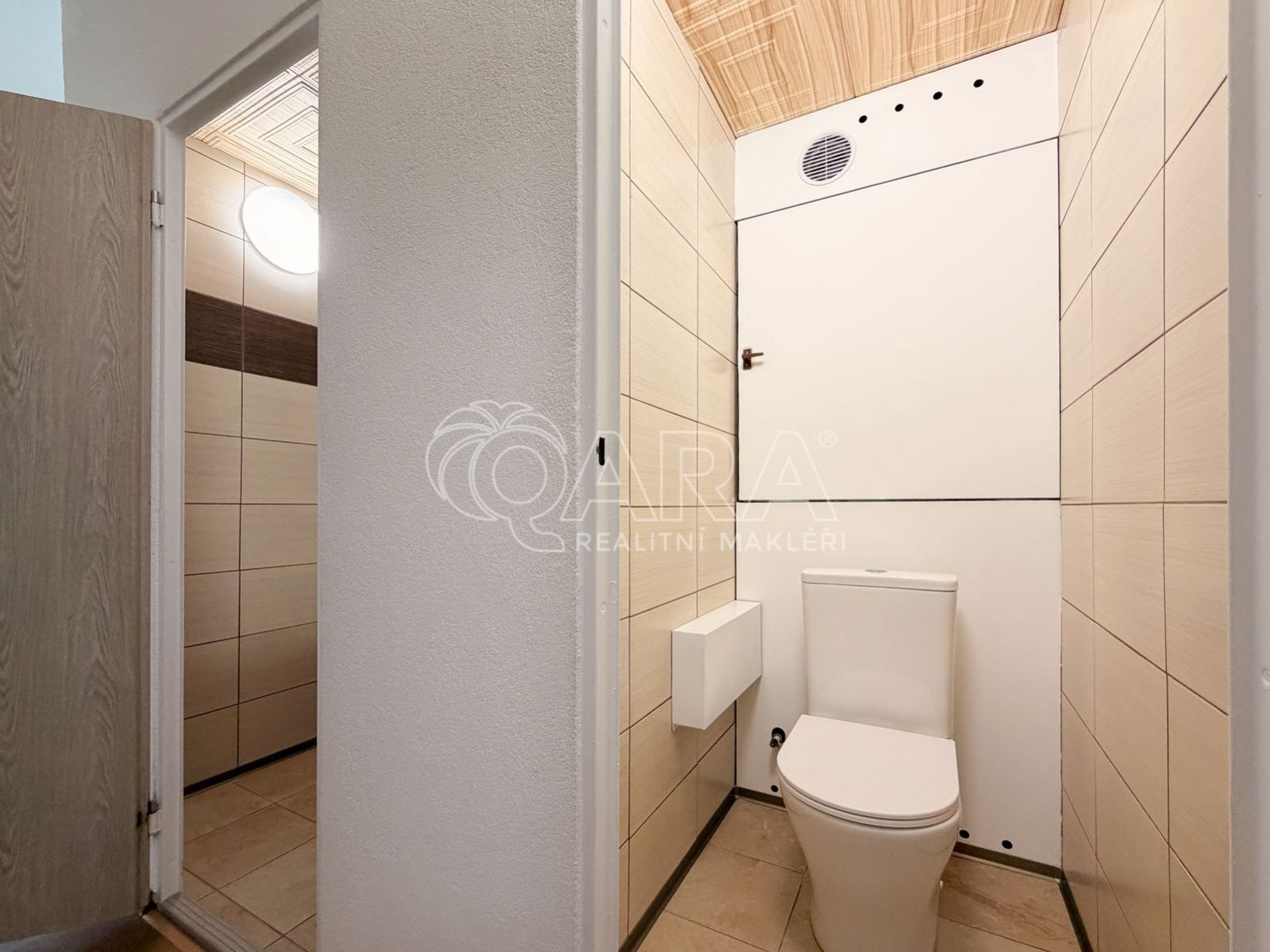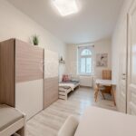Hned u vstupu do bytu se nachází technická místnost, která poskytuje praktický úložný prostor nebo zázemí pro pračku a sušičku. Byt dále disponuje koupelnou a samostatným WC. Všechny pokoje jsou neprůchozí, což zajišťuje dostatek soukromí pro každého z obyvatel.