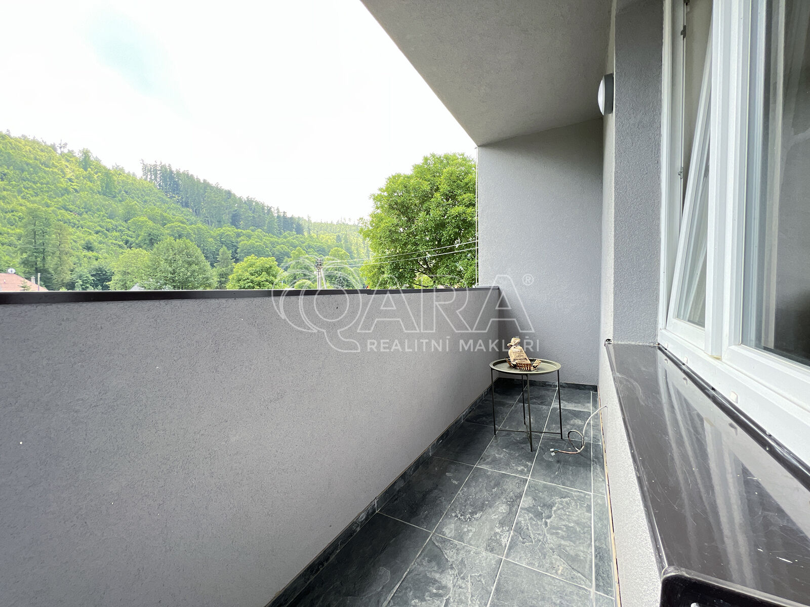 Byt je vybaven moderní kuchyňskou linkou v bílé barvě s granitovým dřezem, černou baterií a dvouplotýnkovou sklokeramickou deskou Amica. V koupelně najdete sprchový kout s černou baterií, závěsné WC Geberit a umyvadlo se skříňkou. V obytné části je laminátová podlaha v šedém odstínu, v kuchyni, chodbě a koupelně pak stylová antracitová dlažba.