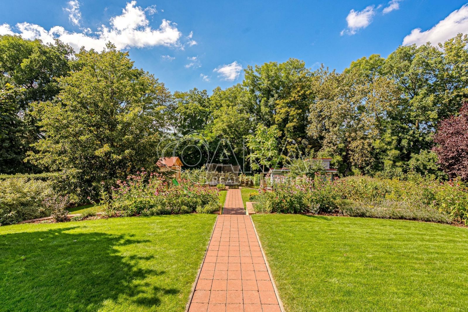 Velkou předností je upravená zahrada s automatickou závlahou, saunovým domkem a příjemným zázemím pro relax i společná setkání.