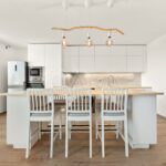 Dům působí světlým a vzdušným dojmem. Hlavní obytný prostor propojuje obývací pokoj s kuchyní a vytváří přirozené místo pro každodenní rodinný život. Velká okna přivádějí do interiéru dostatek světla a zároveň otevírají výhled do zahrady.