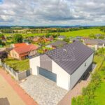Dispozice domu nabízí několik pokojů, tři koupelny, šatnu i praktické technické zázemí. Součástí je také garáž a samostatný prostor vhodný například pro pracovnu nebo podnikání.