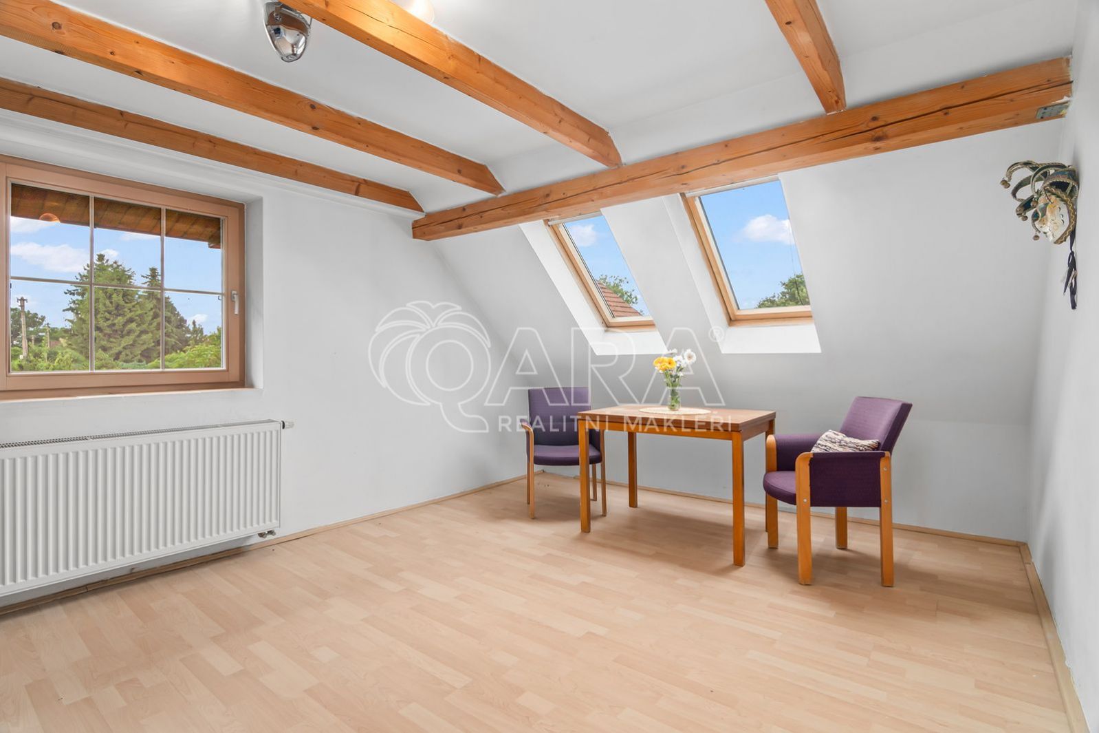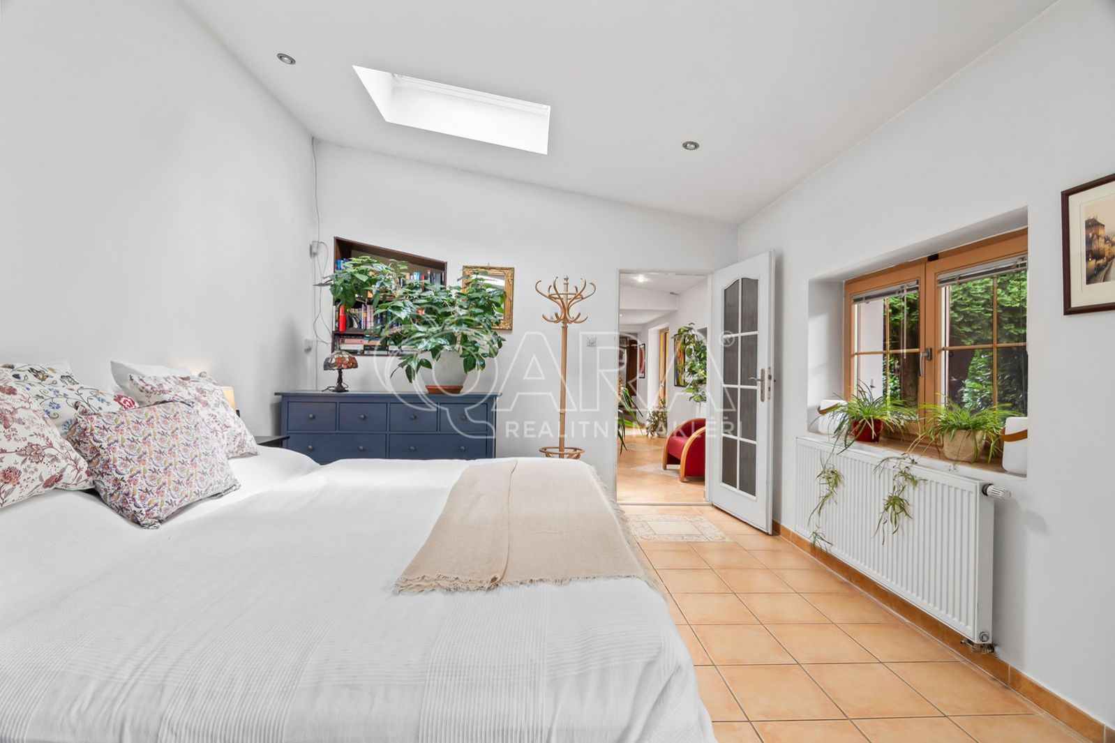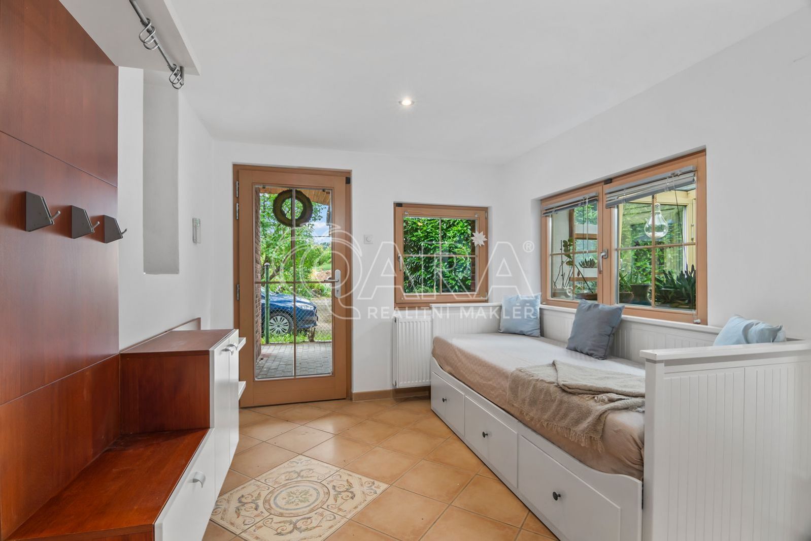V patře se pak nachází další dva pokoje - oba jsou pro komfortní užívání vybaveny klimatizací. Součástí domu je i garáž, další parkovací místo je pak na vlastním oploceném pozemku.