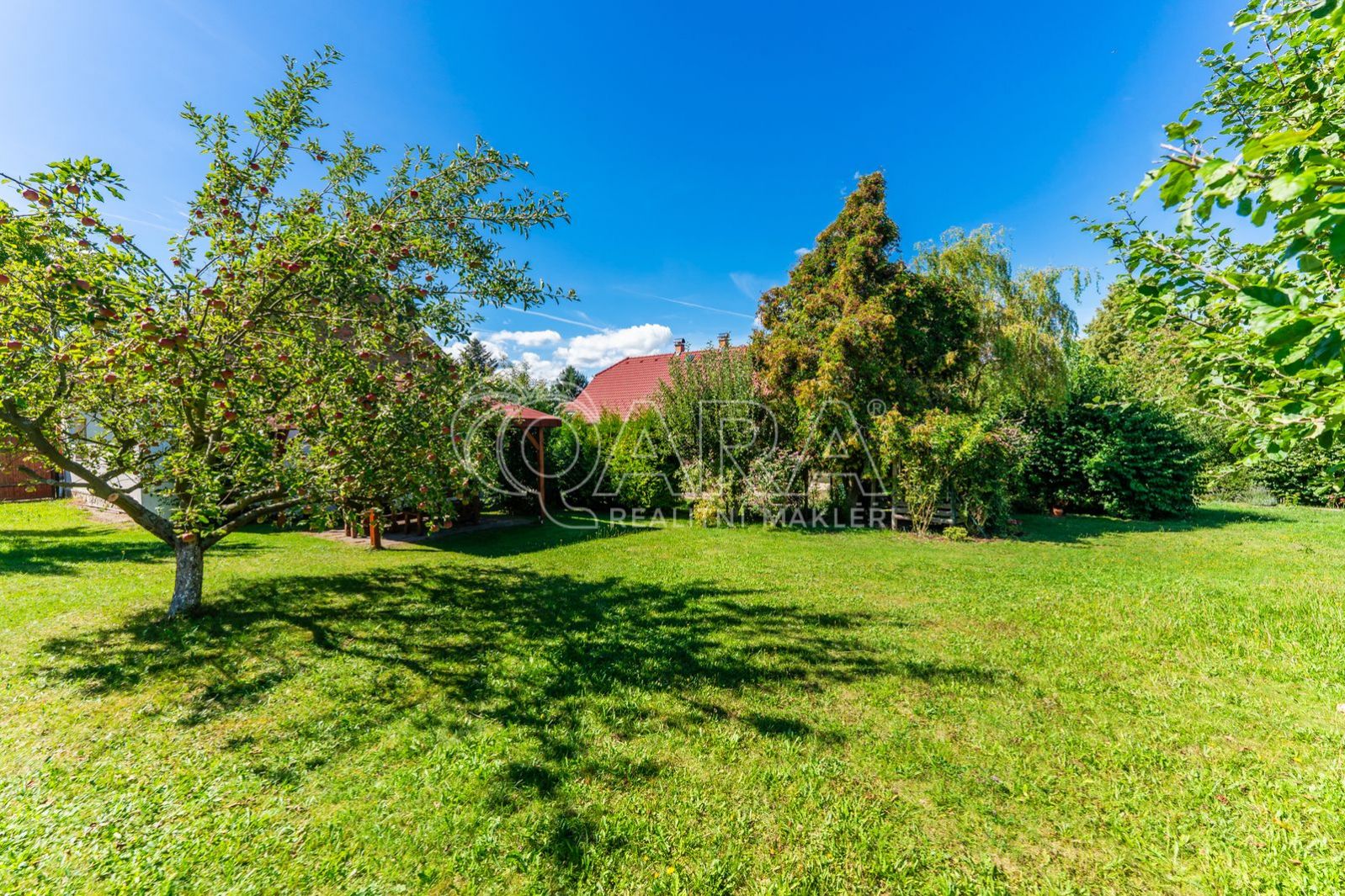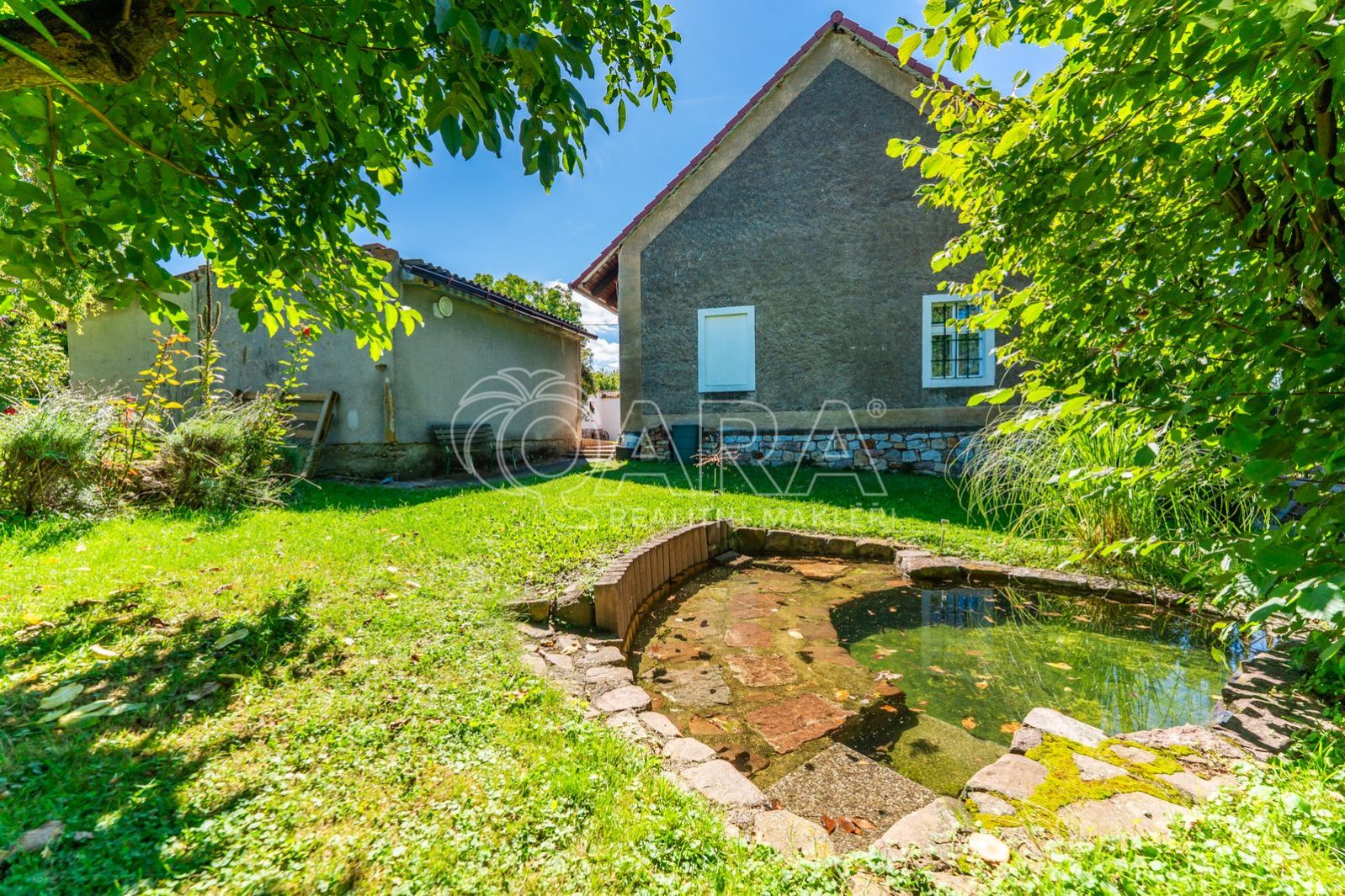 Pozemek je rájem pro sadaře i milovníky odpočinku. Najdete zde vzrostlé ovocné stromy a dva dominantní ořešáky. Letní dny vám zpříjemní okrasné jezírko.